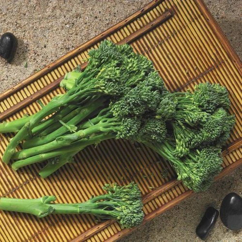 Asprabroc is a fine crop for spring or fall. It is not as frost-tolerant as traditional heading broccoli might be, but in fall it can be grown right up to hard frost or placed in a cold frame. It is an excellent performer in spring. This plant reaches about 20 to 24 inches high, and should be spaced about 8 to 10 inches apart in the garden. Suitable for containers too, of course.