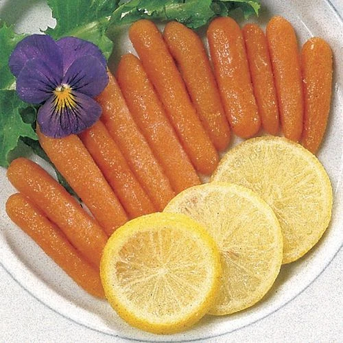 This extra-sweet baby carrot really is the size of your little finger. Growing only about 4 inches long, it is a classic baby variety with a crisp consistency and juicy bite that most everyone finds irresistible. The dark orange roots are smooth and do not taper. Gardeners have relied on this high performer for years.