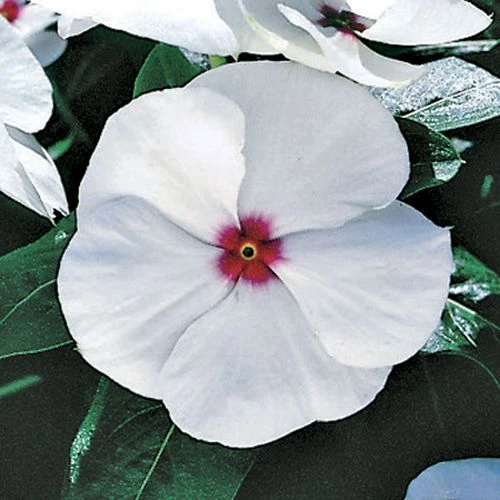 Such a trouble-free delight in the garden, this hale-and-hearty Pacifica Polka Dot Hybrid Vinca begins blooming extra-early with big flowers of pure white, each dotted with a bright red eye. The blooms continue in full force for months, despite extreme heat, poor soil, and just about any other obstacle Mother Nature throws its way. The Pacifica series is renowned for its ultra-tough performance, and you will love the uniform, neat, yet very bushy 10- to 12-inch plants, which stay colorful for months on end.