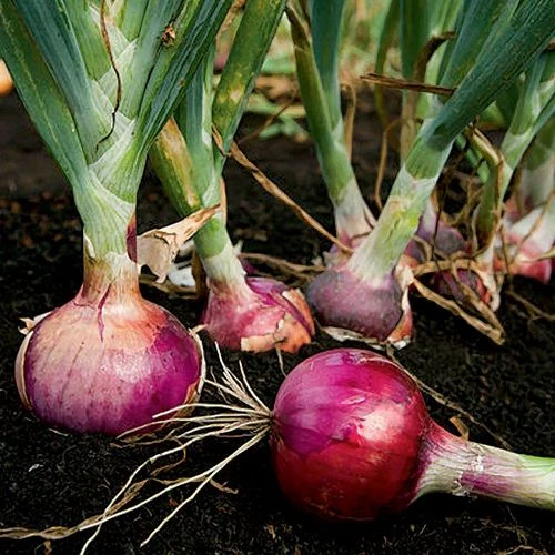 Beautiful and reliable, Red Candy Apple Hybrid Onion is grown as a bulb vegetable. The 3-inch, flattened globe-shaped bulbs have deep red skins and crisp, red-tinted flesh with a sweet flavor. The bulbs will be larger when grown in short- and intermediate-day areas, especially when nitrogen is added. Red Candy Apple Hybrid Onions are a good source of folate and vitamin C and contain higher concentrations of quercetin, which has antioxidant and anti-inflammatory effects. Storage potential is 2 to 3 months.